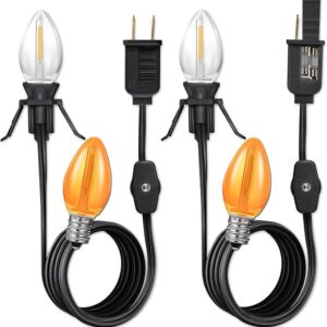 Clip in Light Cord,Accessory Cord with Light Bulb,Candelabra-Base E12 Socket UL Listed Christmas Village House Lights,Ceramic Trees Light (2-Pack 6ft Cord,1 Lamp Socket, Black Cord)