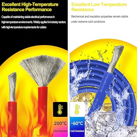 - Extreme Temperature Resistance — With an operational temperature range spanning from -60°C to 200°C, this wire maintains consistent mechanical and insulating properties under both frigid and sweltering conditions. It excels in low voltage wire applications, particularly suitable for special requirements involving high or low temperature environments.