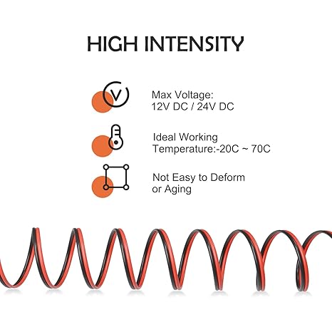 • 【High Quality】The PVC jacket of the 16 AWG 2 conductor wire is rugged and flexible, making it suitable for wiring in small spaces. It has good anti-aging, moisture-proof and anti-corrosion properties, and is heat and cold resistant, with an operating temperature range of -20°C to 70°C.