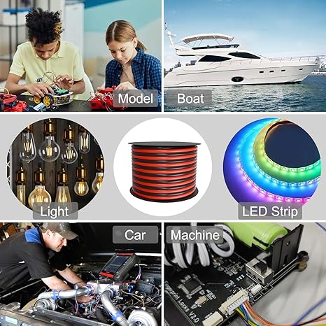 • 【Perfect Performance】16/2 gauge black and red speaker wire is ideal for low voltage applications such as 12V/24V DC circuit connections, home or car speakers, home appliances, single color LED light strip, lamps, automotive, boat ect.