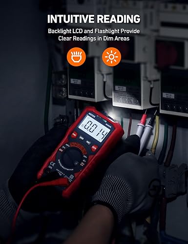 - Wide application – The AstroAI M4K0R Multimeter accurately measures AC/DC voltage to 600V, Current to 10A, Resistance to 40MΩ. You can use it for continuity test, diode test, battery test and live wire test. Includes 1.5V, 9V and 12V battery test modes to easily test a wide variety of batteries. Multimeter light turns red for low voltage and green for enough voltage.
