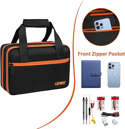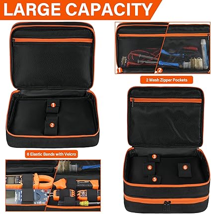 - Large Capacity: In addition to the elastic band compartment, this circuit tester storage box also comes with two large zippered mesh pockets and a front pocket to accommodate your socket repair tool kit, wires, batteries and other small items, etc., which is enough to meet your daily work storage needs