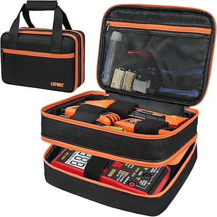 - Double Layer Design: The upper layer of the electrical tester case is compatible with klein tools ET310 AC circuit breaker finder, outlet repair tool kit and RT250 GFCI receptacle tester. The bottom layer is compatible with klein tools electrical voltage test kit and MM400/MM300/MM200/ET140/MM720 digital multimeter