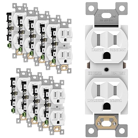 - Complies with 2017 NEC, Article 406. 12 for tamper-resistant receptacles. 15A 125V, 5-15R, self-grounding, 2-pole, 3-Wire. UL94, V2 Rating, 1-year , UL Listed