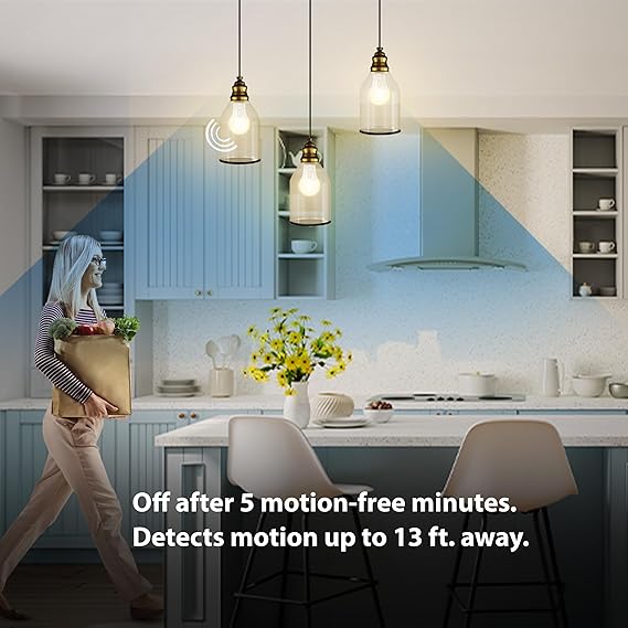 - ✓MOTION SENSOR TECHNOLOGY: The built-in motion sensor enhances energy efficiency by automatically turning the lights on when motion is detected 19 feet away and off when the area is unoccupied for 5 minutes, providing both convenience and savings on your energy bill. This A21 LED light bulb is also provides with an impressive 1500 lumens of brightness, providing unparalleled visibility in any space.