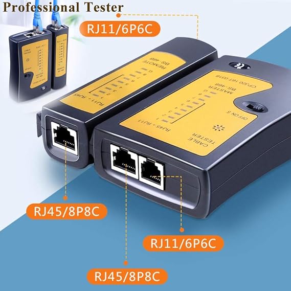【Wide Application】Crimping For RJ11 RJ12, RJ45 CAT5e, 6P 8P, shielded CAT5e, CAT6 modular plugs connectors. Designed for use with telephone lines, alarm cables, computer cables, intercom lines, speaker wires, and thermostat wiring Scanning Function – Find out working wire (network cables, phone lines, coaxial cable, buried cable and even cable behind wall)