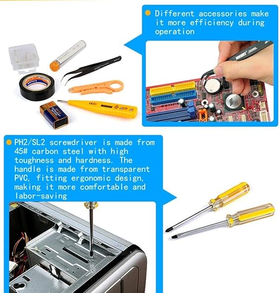 【High Quality】Higher performance RJ45 crimp tool,It cuts, strips and terminates RJ11/12 and RJ45 extended copper wires with a precision die head that provides 360 degrees of connector support during the crimping cycle. More powerful than others when you network repair kits in the market .