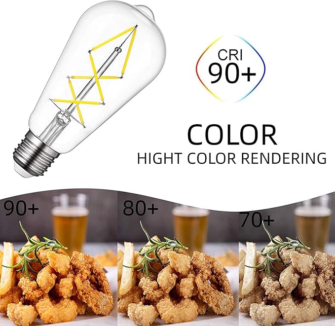 - Energy-Saving LED Equivalent to 60W Incandescent: Featuring a unique fishbone filament design, our vintage dimmable LED bulbs deliver 600 lumens of brightness, equivalent to a 60W incandescent bulb. This energy-efficient LED bulb beautifully illuminates your room while maintaining the classic vintage look. Use our detailed brightness visuals to select the perfect light for your space, and check product details for more information.