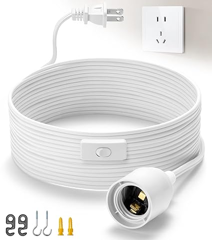 - 【DIY Your Lamp】1 Pack – 15 feet(4.57m) long electrical wire with On/Off switch and polarized plug, The light socket is standard e26 base. Each cord is supplied with 2 S hooks and 2 J hooks.