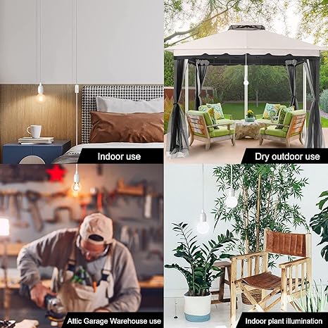 - 【Simple Installation】Simple to install in few minutes with provided sturdy ceiling hooks, drywall anchors, cord hooks and usage instruction. Just screw the lightbulb into the bulb holder, then click the cable switch. long enough cord for most of places, gives you lights where you need it most.