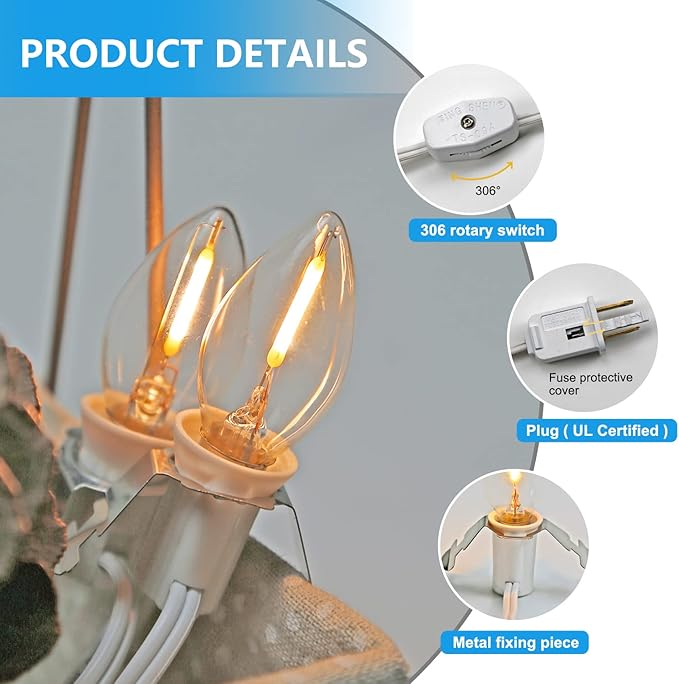 - [ Difference from other C7 light Cord ] Our switch is designed to becloser to the plug of Cord for you to adiust easily. With UL certified.this cord is Safe and durable.