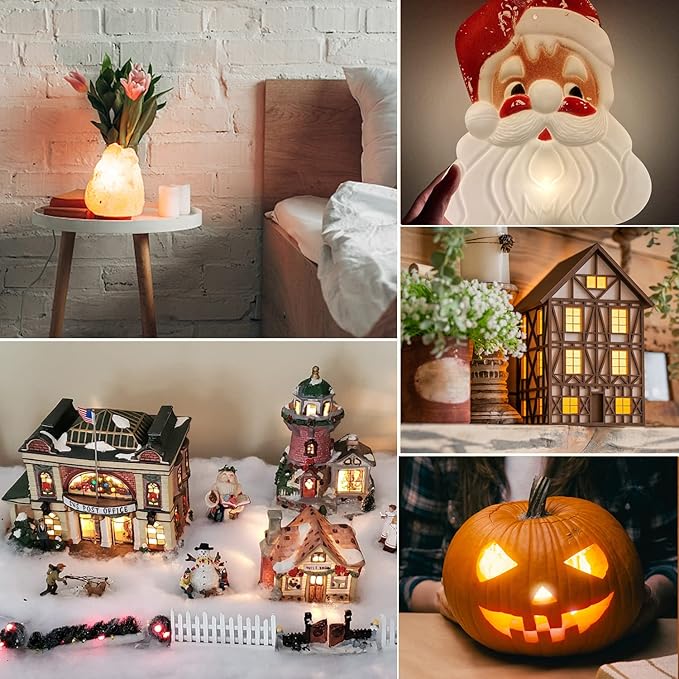 - (Easy To Use] Put the light bulb into the Christmas village house orother small objects, turn on the switch and let the lights sprinkle allover the small room. Light up the bulb, and make your Christmas loodifferent, help you leave more profound memories, end the year withhappiness and get ready for the next year.