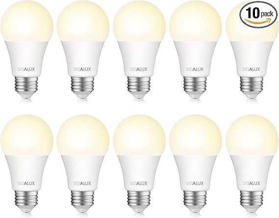 Sigalux A19 LED Light Bulb, Non-Dimmable Led Bulbs 60 Watt Equivalent, Soft White 2700K 800LM 11. 5W, Standard Light Bulbs E26 Medium Base, UL Listed, 10 Pack
