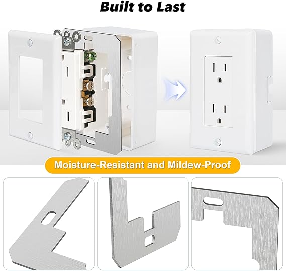 • Premium Material: Our wall plate spacers are made from high-quality galvanized metal, offering heat resistance, waterproofing, and rust protection. They are also highly durable and resistant to deformation, ensuring long-lasting performance without warping over time.