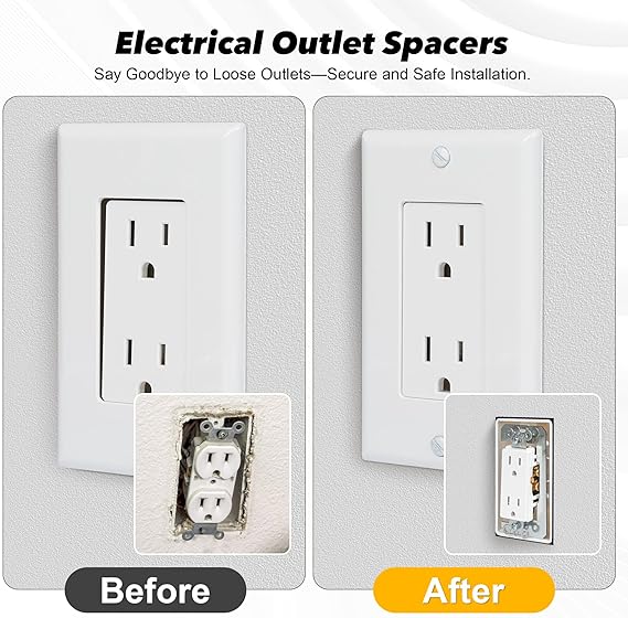 • Outlet Repair: Over time, wall outlet or electrical box can become loose, leading to an unsightly appearance or potential safety hazards. Our wall plate spacers provide a secure and perfect fit, ensuring your wall outlets stay firmly in place.