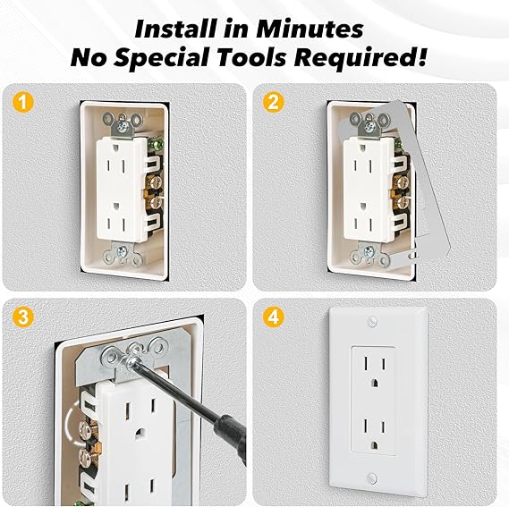• Easy to Install: Before installation, please turn off the power. Remove the wall outlet cover, attach the electrical outlet spacer, and tighten the screws. Ensure it\’s secure with no further looseness. Then, reinstall the wall plate cover.