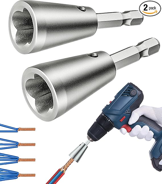 Wire Twister Tool for Drill, Wire Nut Twister Electrician Tool, Electric Wire Twisting Tool for Drill, 6mm Hex Shank Cable Quick Twisting, Wire Stripping and Twisting Tool, 2 PCS