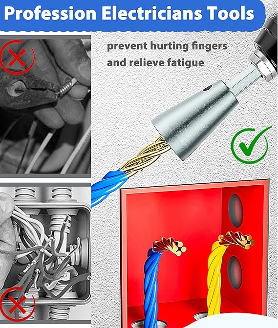 • Improve Work Efficiency: wire stripper for drills can provide a better twisting effect and increase productivity, which can speeds up the assembly process of switches and sockets, prevent hurting fingers and wrists and relieve wrists fatigue