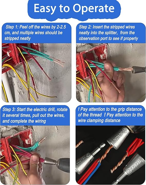 • Drill-Compatible Wire Twister: wire twister designed for use alongside electric drills, this versatile tool accommodates 2.5/4/6 square millimeter wires (compatible with all sizes) and offers 2-5 Way parallel functionality, enduring over 50000 twists