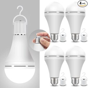 Neporal 4 Pack Emergency-Rechargeable-Light-Bulb, Stay Lights Up When Power Failure, 1200mAh 15W 80W Equivalent LED Light Bulbs for Home, Camping, Tent (E27, with Hook) (Daylight)