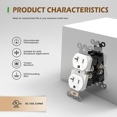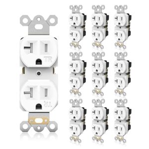 Duplex Wall Receptacle Outlets, 20A Tamper-Resistant Electrical Receptacle, 2 Pole 3 Wire, Self-Grounding, Residential Grade Wall Power Socket, White, UL Listed, 10 Pack