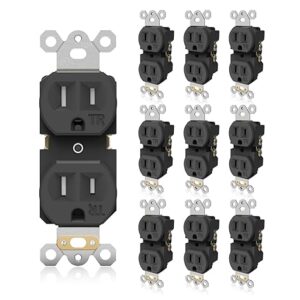 Duplex Wall Receptacle Outlets, 15A 125V 1850W, 2 Pole 3 Prong, Tamper Resistant Electrical Socket, Self-Grounding, Residential Grade Power Receptacle, UL Listed, Black, 10 Pack