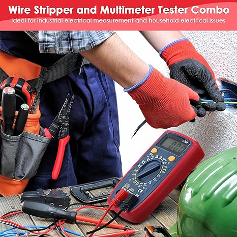 Dreyoo 8 Inch Multimeter Tester and Wire Stripper Combo, 2000 Counts Digital Multimeter with DC/AC Current Voltage Resistance Capacitance Continuity Meter, Wire Stripping Tool Wire Cutter Wire Crimper